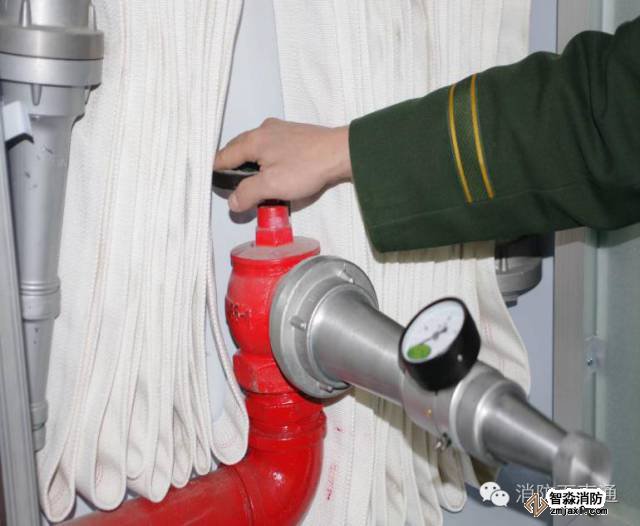(c)打開(kāi)消火栓閥門(mén)放水此時(shí)不應(yīng)壓折水帶,壓力表顯示的水壓即為消火栓栓口的水壓力。